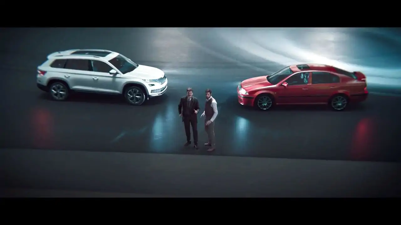 Los protagonistas de las imágenes son los creadores de la marca, que van conduciendo sucesivos modelos, desde bicicletas, hasta motocicletas. El punto álgido se lleva a cabo con un Octavia RS de primera generación y un Kodiaq. En ese momento, el guardia de seguridad decide ver qué está pasando ante el alboroto que se está organizando. El resto, mejor que lo veas tú mismo.