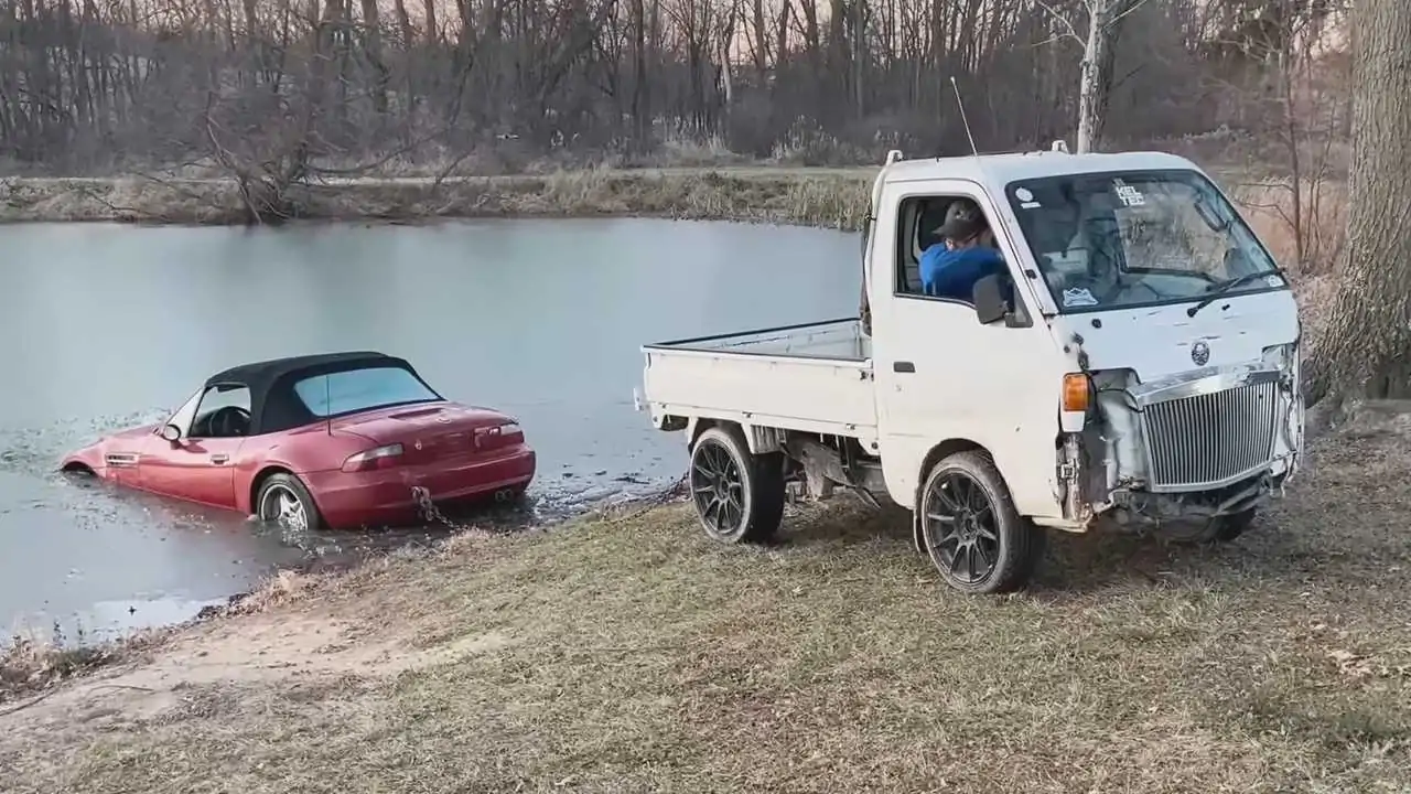 Un BMW Z3 abandonado e inundado recibe un último lavado a fondo