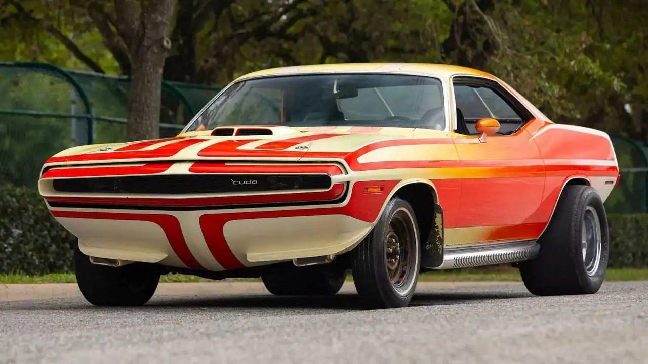 Se trata concretamente de un Plymouth Cuda 440 Rapid Transit único, fabricado para el evento Rapid Transit System Caravan de 1970, una especie de feria ambulante de la marca que servía de escaparate de sus últimos y más modernos modelos, como este Rapid Transit, el Road Runner, el Duster 340 o el HEMI Cuda.