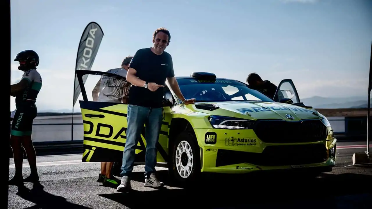 ¿El motivo? El coche de carreras fue el encargado de dar la salida de la cuarta y última etapa de la prueba, la de La Legión, con el piloto asturiano al volante y el director deportivo de la prueba, Manuel Tajada, reviviendo sus tiempos de copiloto desde el asiento de la derecha. De hecho, tienes el vídeo de la salida justo debajo.