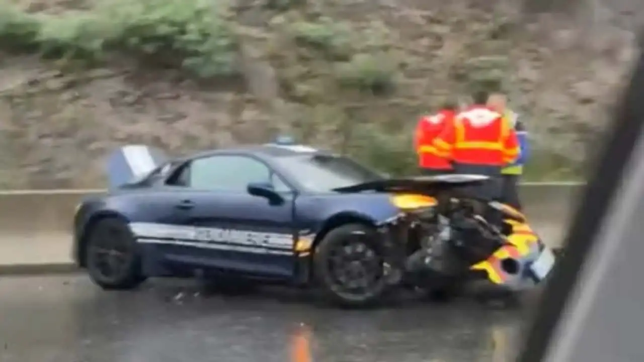 Su chasis de aluminio podría haber resultado dañado. Al igual que el accidente anterior, el choque tuvo lugar en una carretera mojada. Es cierto que el hecho de que el Alpine sea un coche de propulsión trasera no ayuda en estas condiciones, pero aún así...