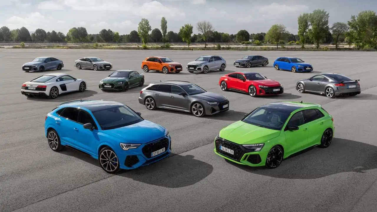 La historia de los modelos RS de Audi nació en 1994 con el mítico Audi RS 2 Avant, ensamblado por Porsche en Zuffenhausen, pero en la actualidad la gama de Audi Sport es amplísima, ya que incluye todo tipo de modelos, de muy diversos segmentos, con un total de 14 carrocerías diferentes disponibles.