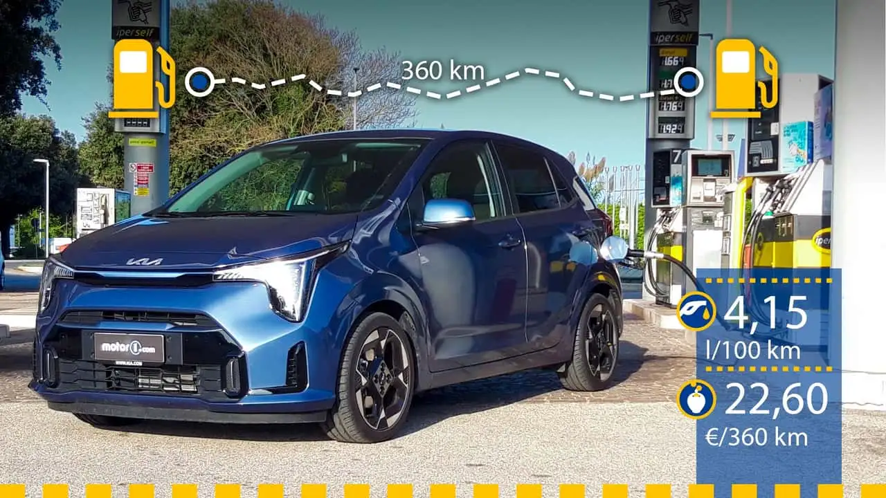 Dotado del motor atmosférico de gasolina 1.0 DPI, con tres cilindros y 63 CV (hay también en la gama un bloque 1.2 de 79 CV), y de un cambio manual de cinco marchas, el Picanto logró una excelente media de 4,15 litros cada 100 km (24,10 km/l), lo que supuso un desembolso de 22,60 euros en el trayecto de 360 km entre Roma y Forlì.