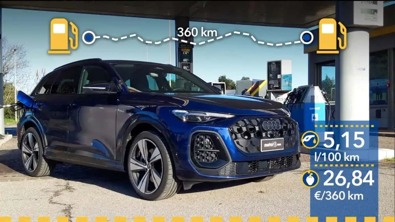 Para esta prueba de consumo real, hemos recurrido al Audi Q5 2.0 TDI mild hybrid de 204 CV con tracción total quattro y cambio automático S tronic de doble embrague y siete velocidades. La elección supuso un consumo medio decente de 5,15 litros cada 100 km (19,42 km/l), con un gasto de combustible de 26,84 euros para el viaje de 360 km de Roma a Forlì.